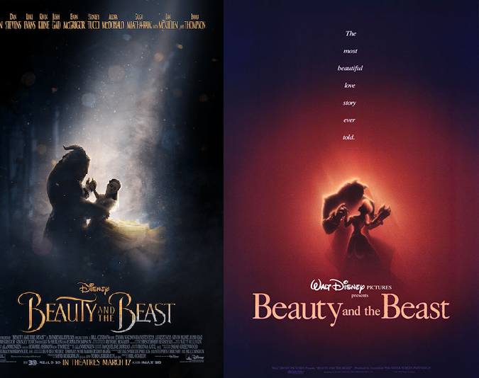 Композиция, а главное освещение на этом плакате напоминают оригинальный постер к мультфильму "Красавица и Чудовище" 91-го года.