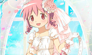 Коллекция официальных артов по аниме «Девочка-волшебница Мадока Магика» с главными героинями в свадебных платьях.