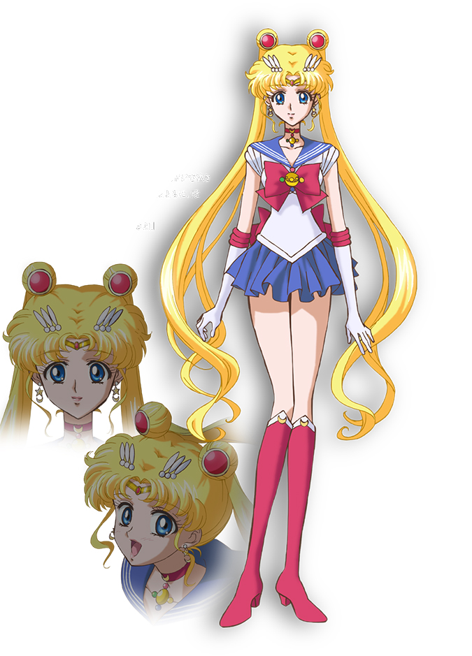 Теперь, врубайте фанфары. Параааам! На сцене появляется Банни Цукино, Сейлор Мун. Вообще, внешность Усаги – это отдельный разговор. Вот, например, её прическа: на висках появилась пара волнистых прядей. Оданго – хвостики больше не свисают длинными желтыми палками. Цвет волос стал более ближе к лимонному, я бы даже сказала к зеленоватому ( что меня лично расстроило, ибо я привыкла к золотым волосам) ну это грубо говоря. Глаза – прекрасного голубого цвета, так же блеск на губах и серёжки – гвоздики, как у Ами и Минако.