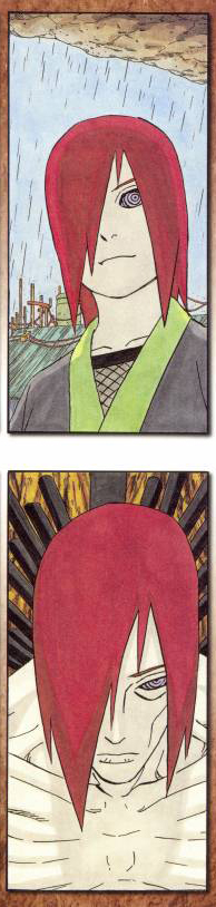 Нагато (长 门) был формальным лидером Акацуки и управлял Амегакуре. Все члены организации, за исключением Конан, называли его «Лидер». Он руководил действиями всех членов Акацуки, тайно сотрудничая с Мадарой.![]()