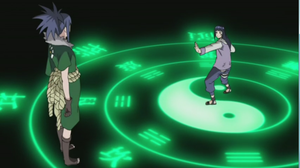 Отдельно отметим, что Хината была выбрана участвовать в запечатывании Треххвостого (Three-Tailed Giant Turtle). техникой Four-Corner Sealing Barrier.