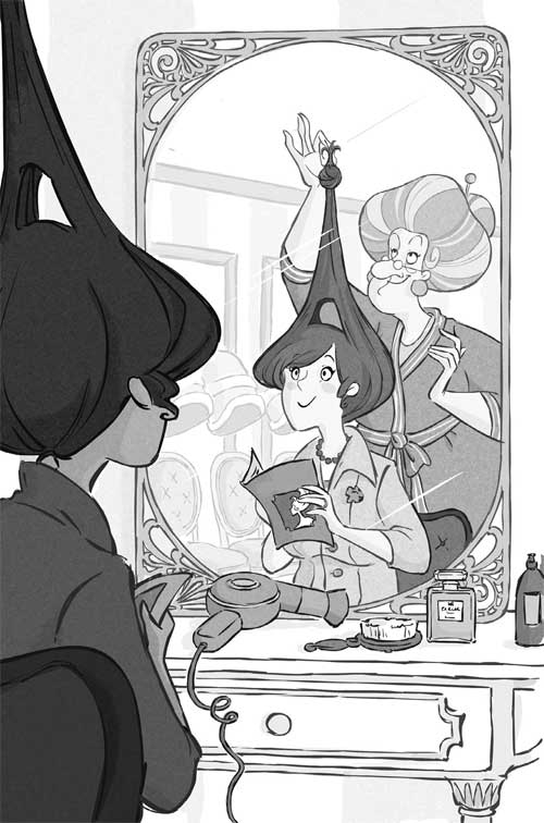 Сама по себе эта история написана интересно, она заполнена необычными и харизматичными персонажами. Но что делает эти книги особенными, так это очаровательные иллюстрации Алессандры Сорентино. Иллюстрации в книге выполнены в черно-белом цвете, но в каждой из них есть цветная глянцевая вставка, а также бумажная кукла одного из персонажей с одеждой.