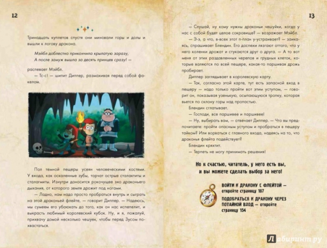 Только осторожнее, ведь ты можешь привести близнецов не только к сокровищам, но и туда, откуда нет выхода, например, во временной тупик. Перед тобой книга, в который ты сам можешь строить сюжет, выбирать места действия и принимать решения за героев. Путешествуй во времени вместе с Диппером, Мэйбл и Блендином!