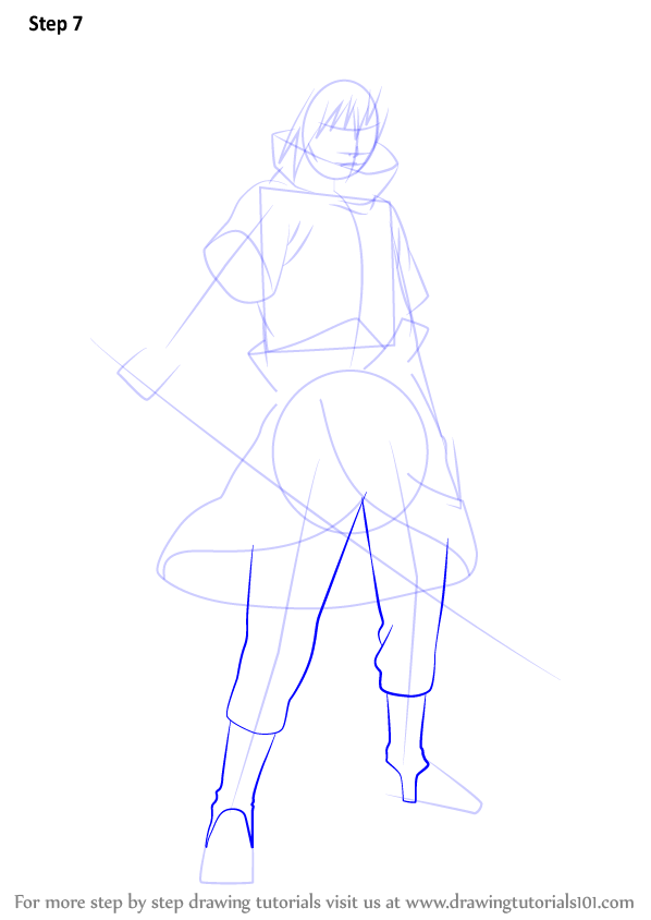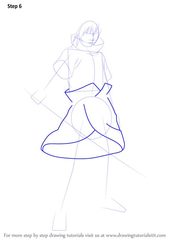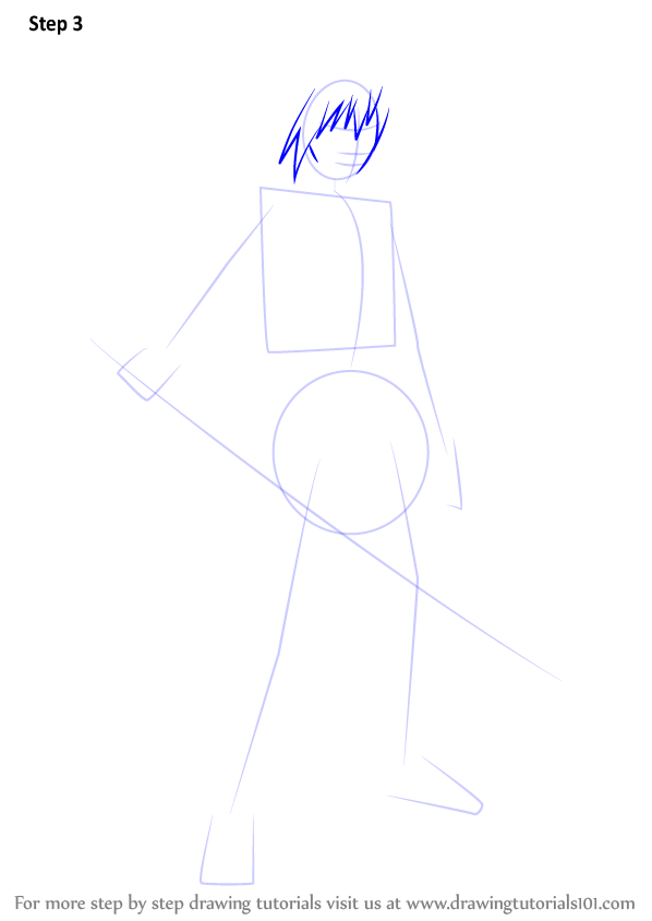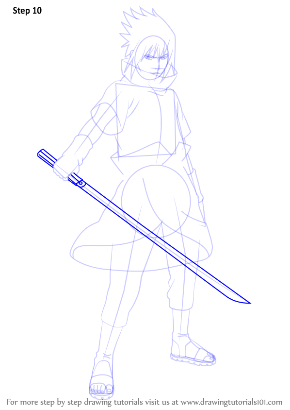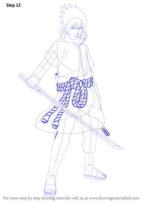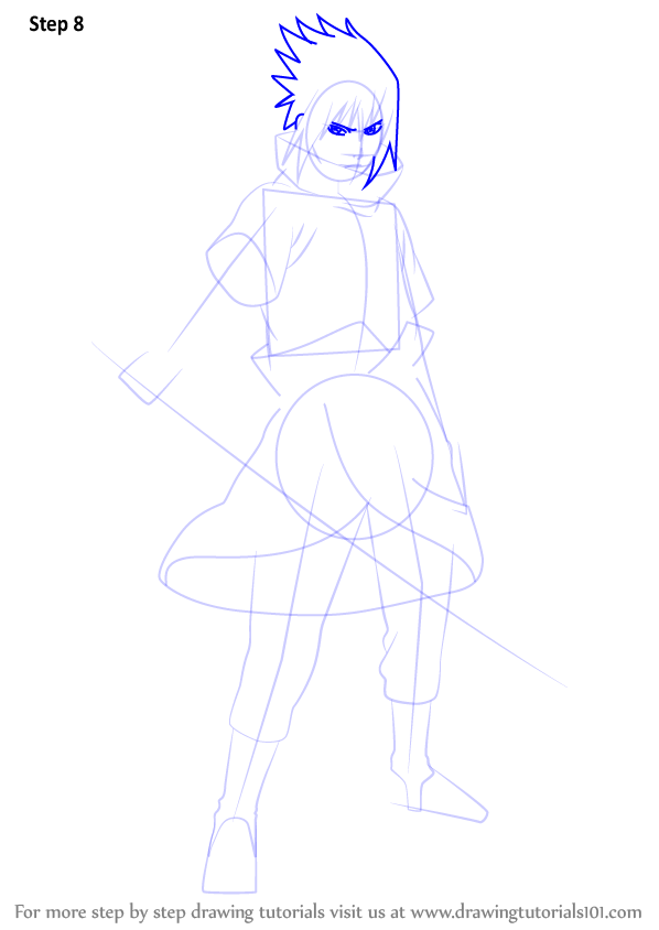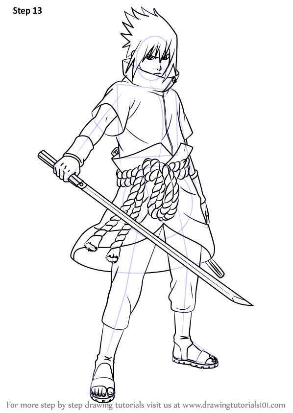 Нарисуйте шаг за шагом Саске из аниме Наруто Шиппуден.