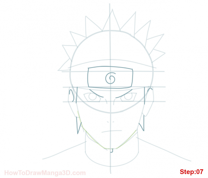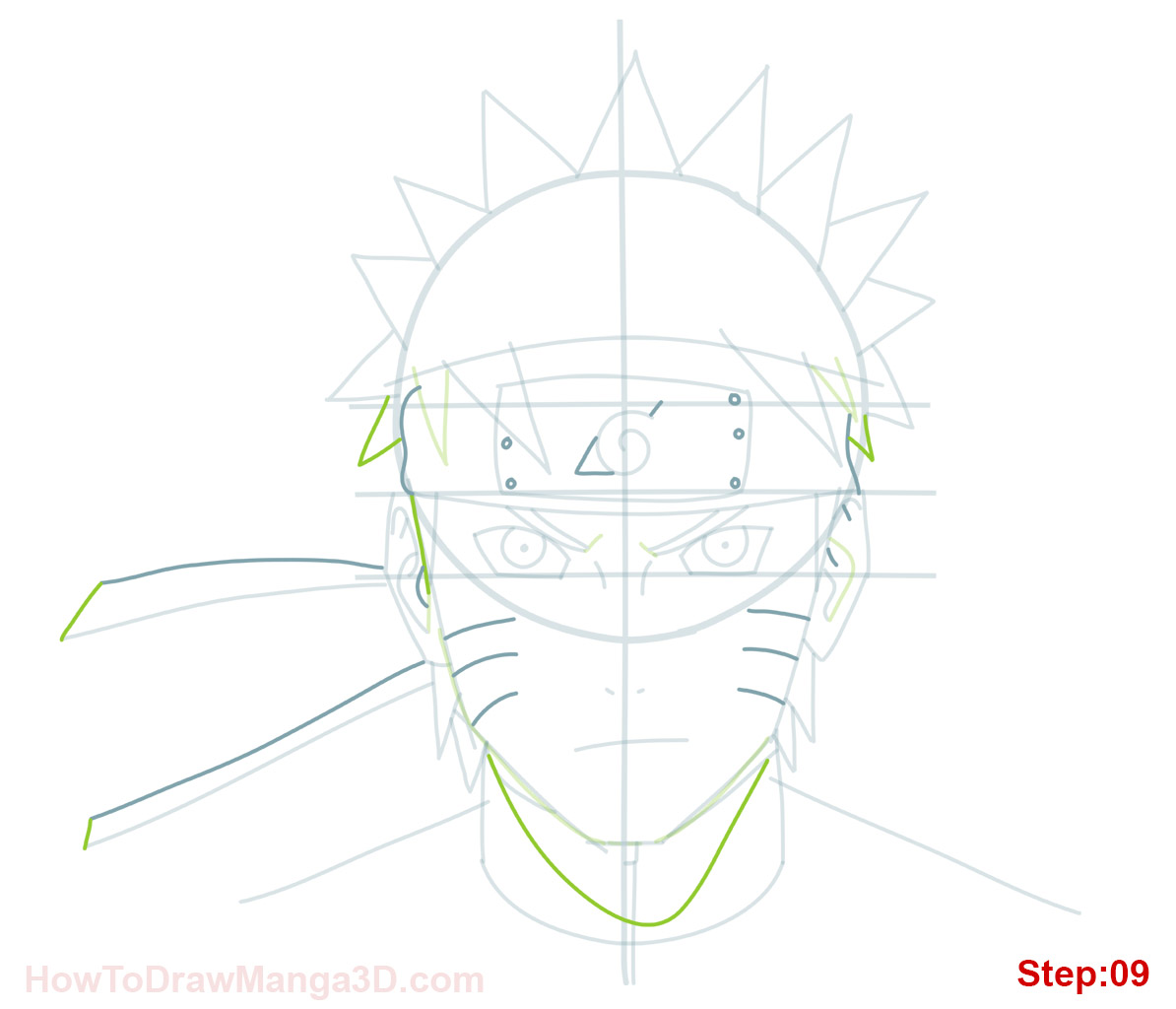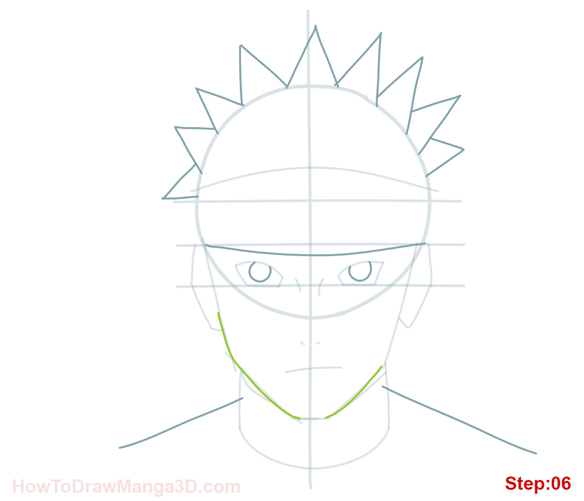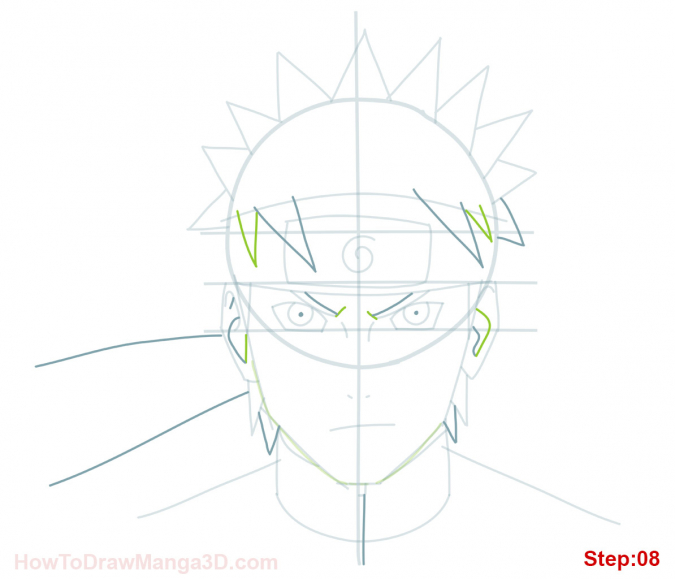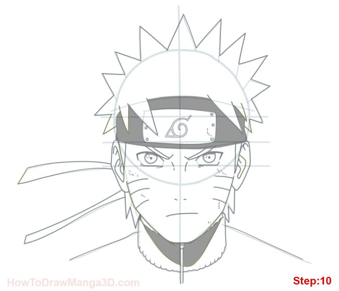 Научись рисовать Наруто поэтапно. В этом тебе помогут картинки подсказки, на которых подобно показан каждый следующий шаг рисунка.