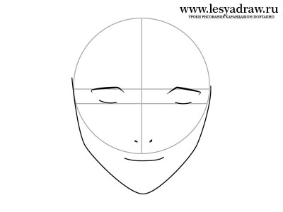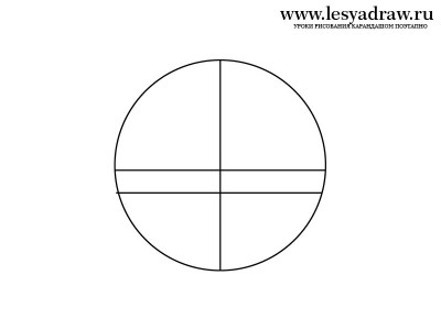 Рисуем окружность и определяем середину головы и расположение глаз.
