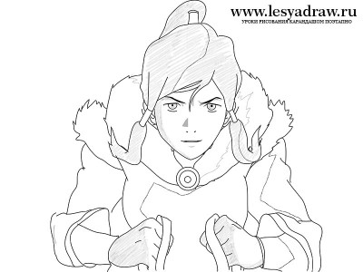 Сотрите ненужные линии и рисунок аватар Корра должна получиться так.