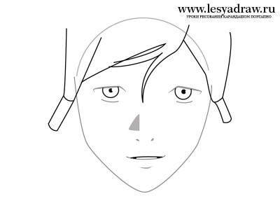 Сотрите ненужные прямые, дорисуйте рот, глаза, челку.