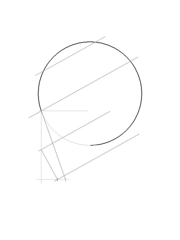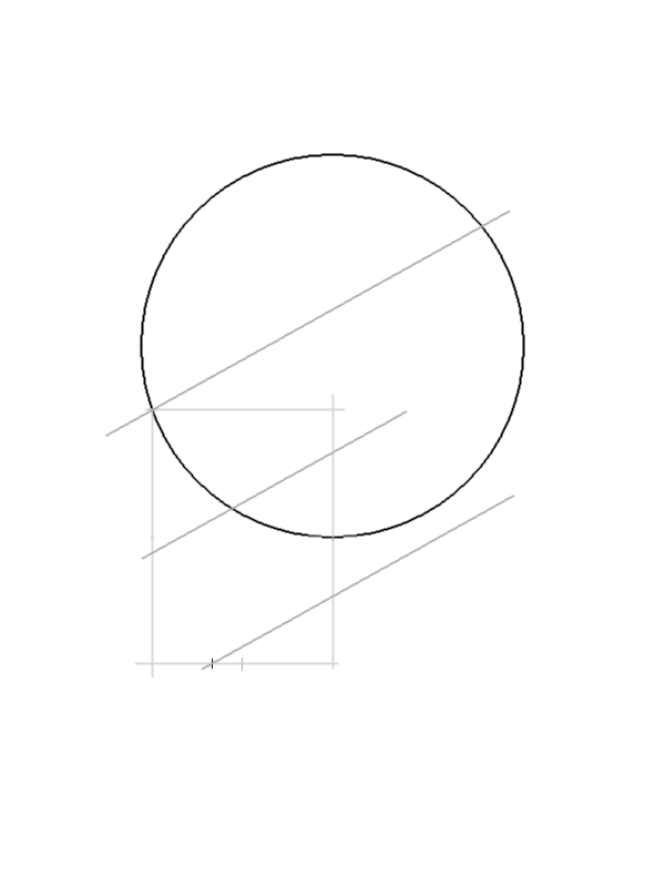 Нарисуйте ещё одну горизонтальную линию ниже круга на расстоянии от горизонтальной линии до основания круга и дорисуйте, до пересечения с ней, центральную вертикальную.