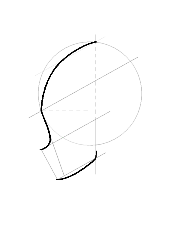 9.Теперь рисуем лоб из верхней точки пересечения в левую сбоку.