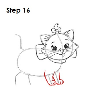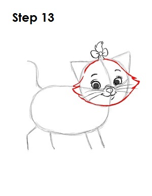Ниже показано поэтапно как можно нарисовать кошечку Мари с бантиком с помощью простого карандаша.