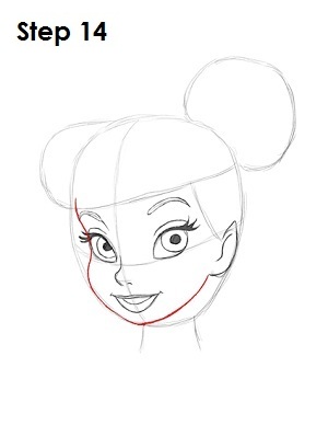 Это очень важный этап. На нем вам нужно правильно нарисовать настоящие контуры лица феи Динь Динь. Обратите внимание что у неё довольно округлое лицо и щечки.