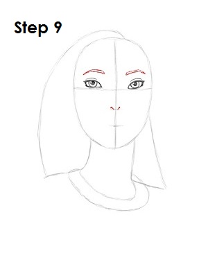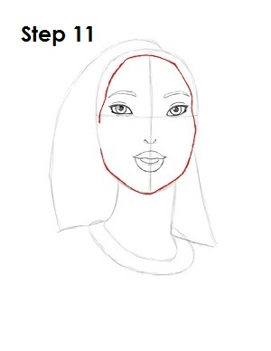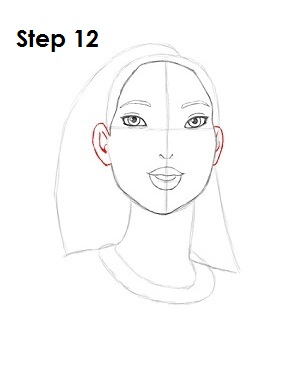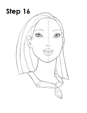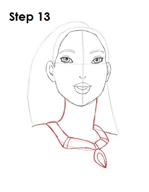 В этом пошаговом уроке каждый этап выделен красным цветом. Не нужно пугаться того что в начале рисунок выглядит немного странно. Постепенно все детали будут прорисованы и у вас получится очень красивый портрет Покахонтас.