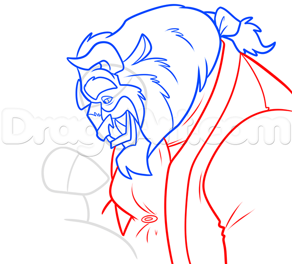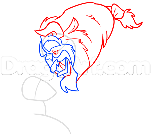 Сначала мы будем рисовать Чудовище. На этом этапе вам нужно нарисовать такой же крючковатый нос и высокий лоб.