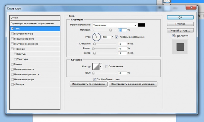 Этот стиль слоя отвечает за тень, отбрасываемую объектом.