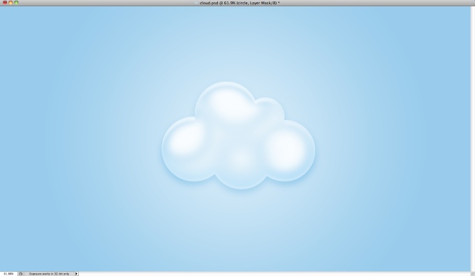 Шаг 12. Вот такое симпатичное облако получилось у нас с помощью только стилей слоя. Оно уже выглядит очень неплохо, но не помешает сделать его чуть более объемным.