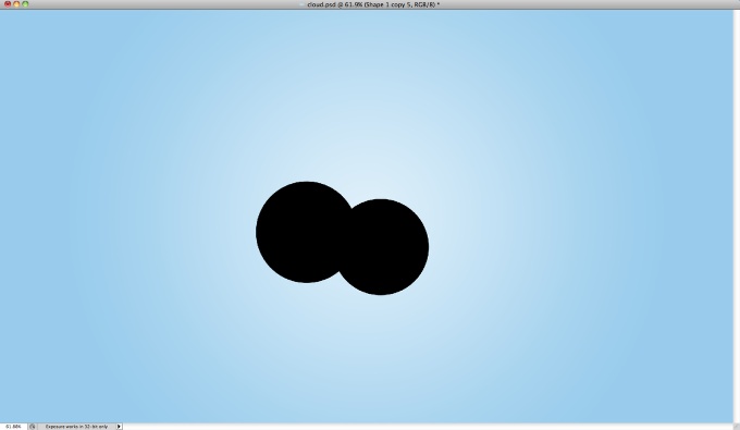 Шаг 6. И, наконец, еще один, последний круг. Он должен быть побольше, чем остальные и располагаться рядом с предыдущим маленьким. Закончив рисовать круги, объедините полученные слои с кругами в группу, для этого выделите их, удерживая зажатой клавишу Ctrl, после чего нажмите Ctrl + G. Затем сделайте копию группы. После чего в дубликате группы, выделите все слои и в главном меню пройдите Слой – Объединить слои (Layer - Merge Layers). Таким образом, в одной группе у Вас будет один слой со всем облаком целиком, а в другой группе останутся круги на отдельных слоях, что пригодится нам позже в уроке. Видимость оригинальной группы, можно убрать.