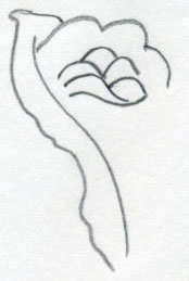 Теперь в основании бутона нам нужно нарисовать несколько заостренных лепестков. От основания бутона вниз проведите слегка изогнутую линию, а затем по бокам от нее повторяющие ее движения линии. Рисуя сначала сердцевину стебля вы облегчите себе задачу затем рисуя параллельные линии.