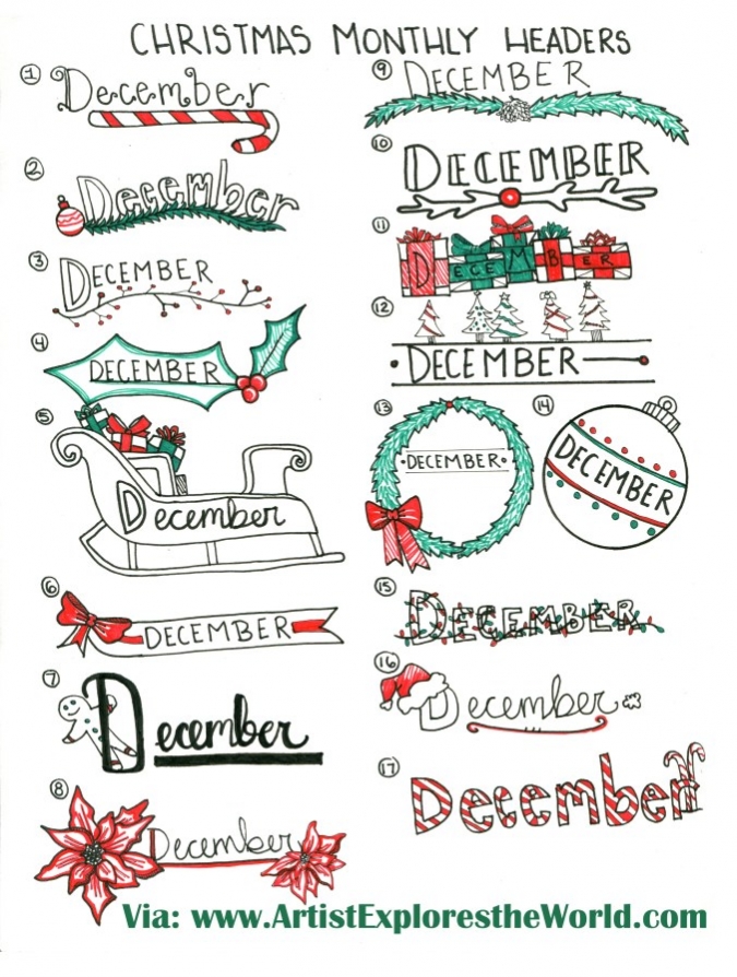 Идеи рисунков для записи дат в ежедневниках и дневниках. Пишите их на рукавичках, подарках, ёлочных шариках, возле зимних птичек...