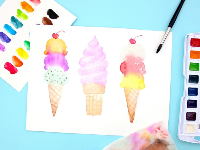 Для очень многих лето = мороженое, и лето = яркие краски. А что может быть позитивнее красивого рисунка мороженого, нарисованного яркими красками? В этом вам поможет этот мини мастер-класс по рисованию акварельными красками. Вы также можете рисовать гуашью, это даже будет немного проще, хоть и финальный результат будет немного отличаться.