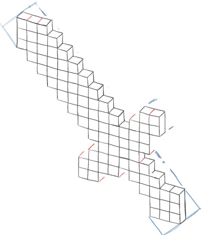 Как нарисовать объемный меч из Майнкрафт поэтапно