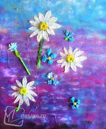 Таким образом, я сделала три ромашки и добавила к ним васильки. Ведь на поле они, обычно, растут рядышком.