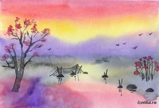 Видео урок: учимся рисовать пейзаж акварелью по мокрой бумаге