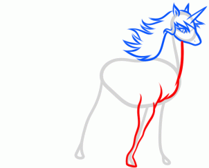 На этом этапе начни рисовать тело единорога: грудь, переднюю ногу.