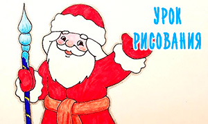 В этом видео автор раскрашивает шубку Деда Мороза в красный цвет, но ты можешь раскрасить его в традиционный синий.