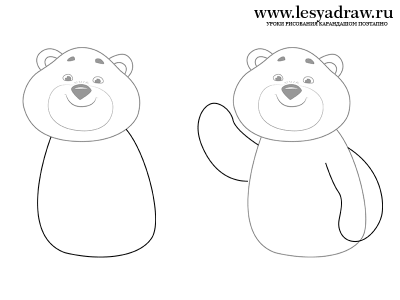 Рисуем тело, передние лапы олимпийского мишки.