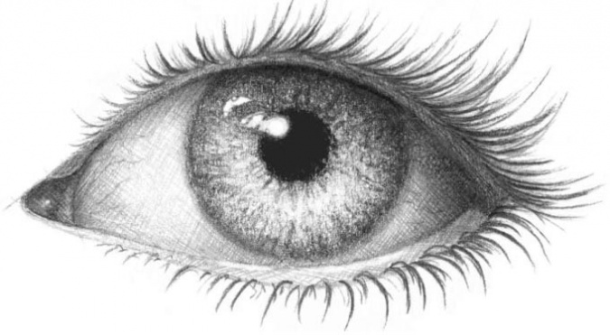 3) Добавьте несколько темных ресниц различной длины (карандашом 2B) в районе внешнего угла глаза.