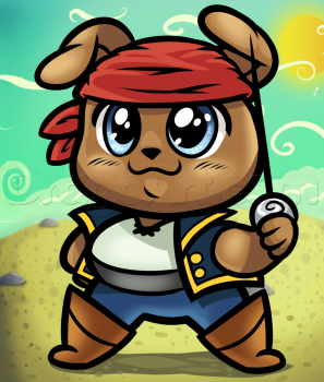 Сбоку нарисуй его маленькую лапку с шпагой.
