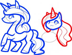 Теперь можно заняться вторым единорогом и нарисовать его мордочку.