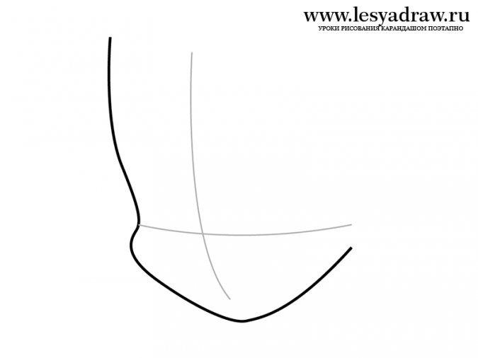 1. Рисуем контур лица и кривые, указывающие направление головы и расположение глаз.