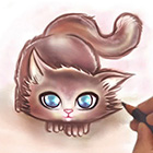 Вот так красиво можно раскрасить рисунок с большеглазым котенком.