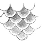 Во-первых чешуйки могут иметь разную форму. Чаще всего рисуют более округлые чешуйки, но это совсем не обязательно.