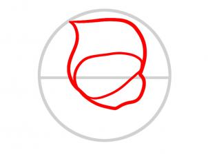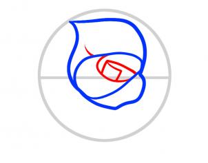Теперь на базе этой окружности мы начнем создавать рисунок розы. Для начала нарисуй несколько лепестков в центральной части, как на примере.