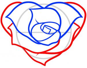 Порадуй близких на праздник рисунком необычной розы в форме сердца.