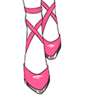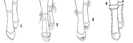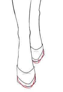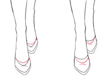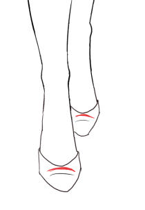 Если вы будете рисовать пуанты или греческие сандалии, предполагающие наличие лент и других элементов обвивающих ноги (например ремней), имейте в виду что по краям они должны быть нарисованы слегка изогнутыми (не прямыми) линиями.