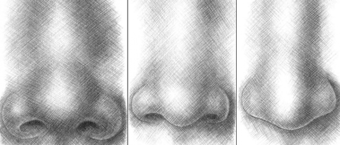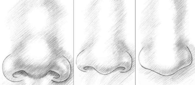 Рисуя нос, постарайтесь забыть, что вы его рисуете. Вместо этого, попытайтесь сконцентрироваться на обозначении разных форм в соответствии со светом и тенью.