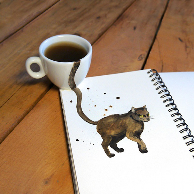 Художница Елена Ефремова создала серию интересных работ под названием "Кофейные Кошки". Как у разного кофе есть свои аромат, так у каждой из её кошек свой характер.