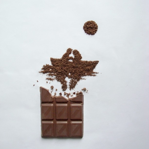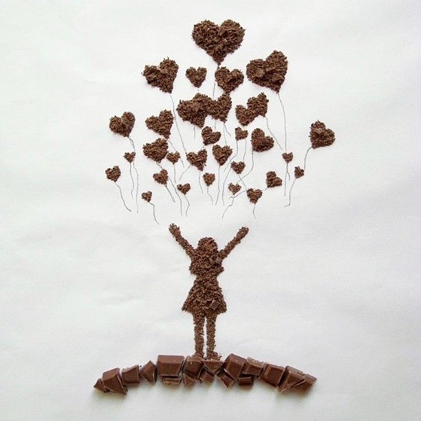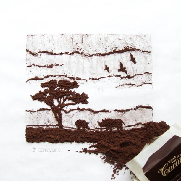Помнишь съедобные картины в ложках? Их автор еще делает потрясающие работы с помощью супер аппетитного материала - шоколадной крошки.