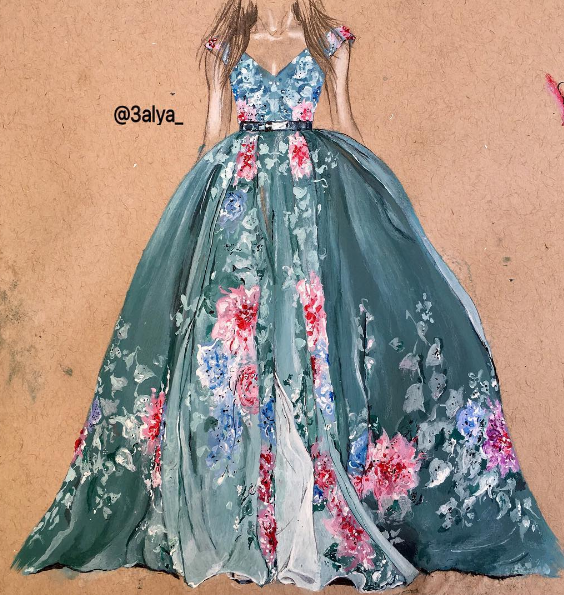 Автор этих на первый взгляд простых, но очень красивых иллюстраций - художница с ником 3alya. 3alya Родом из Объединённых Арабских Эмиратов и очень любит моду. Это хорошо заметно по её рисункам, платья на них выглядят просто восхитительно!