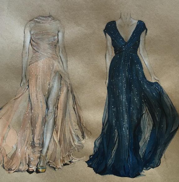 Фэшн иллюстрации: Изысканные рисунки платьев