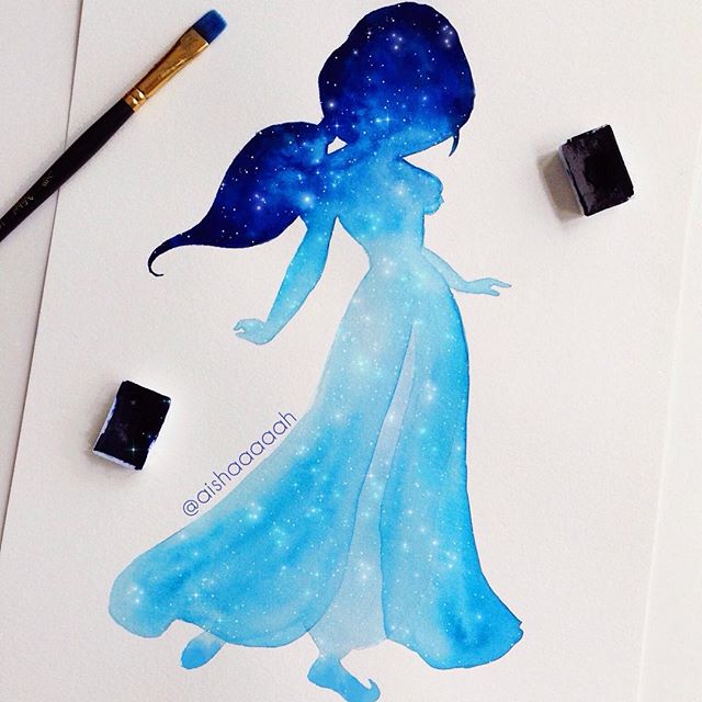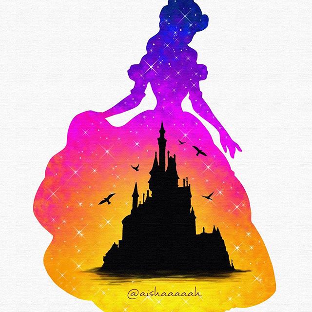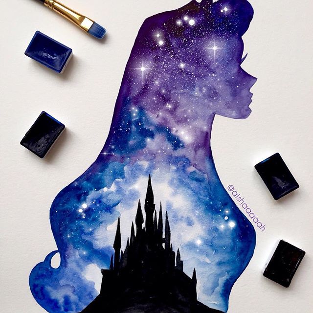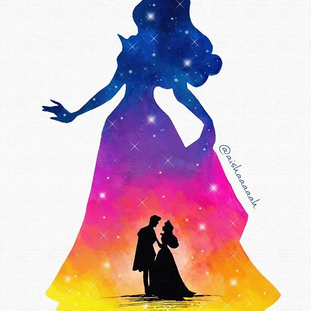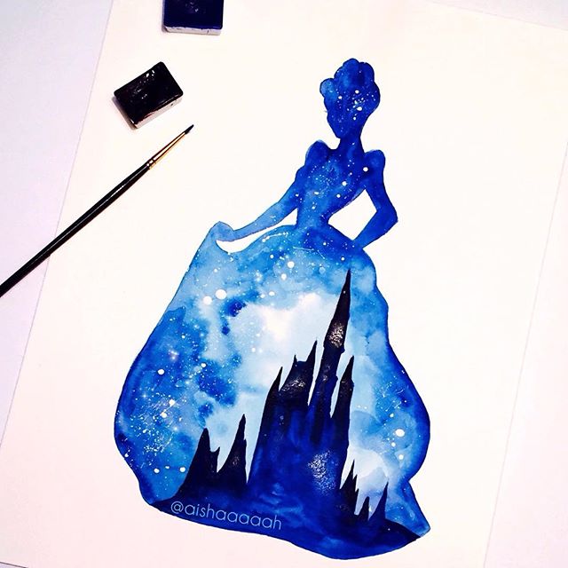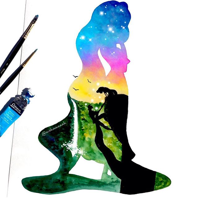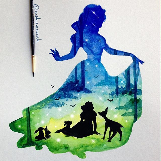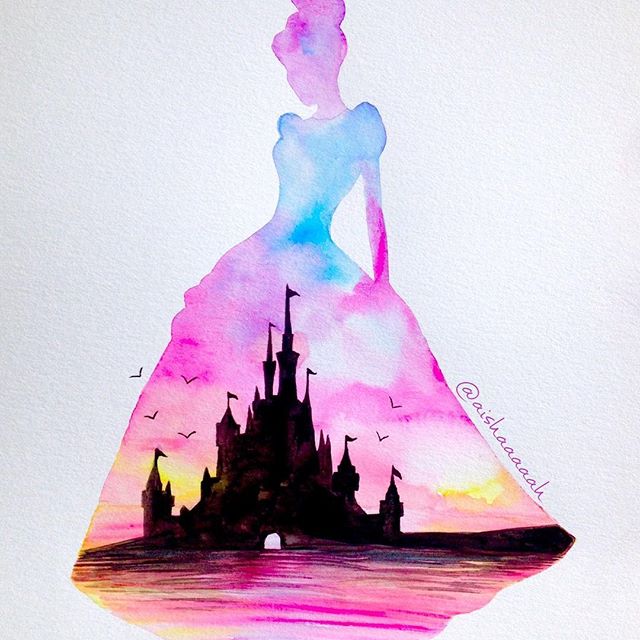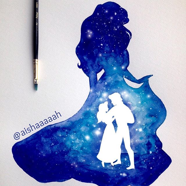 Нежные и сказочные акварельные силуэты Дисней Принцесс в работах @aishaaaaah