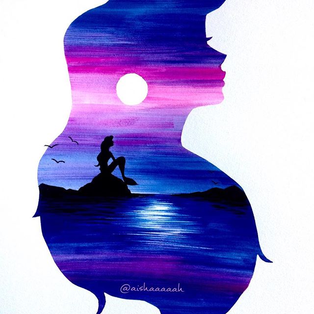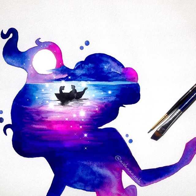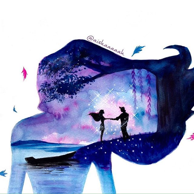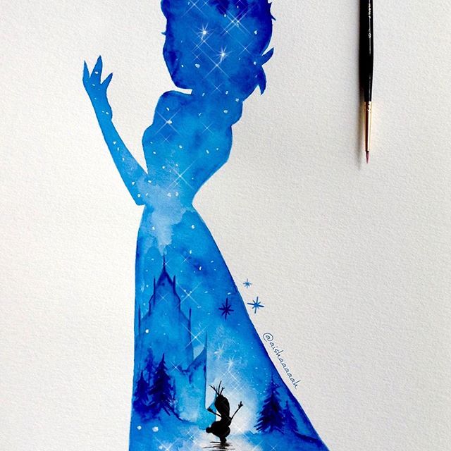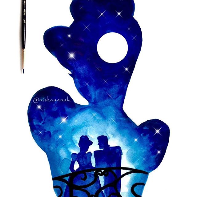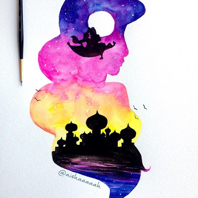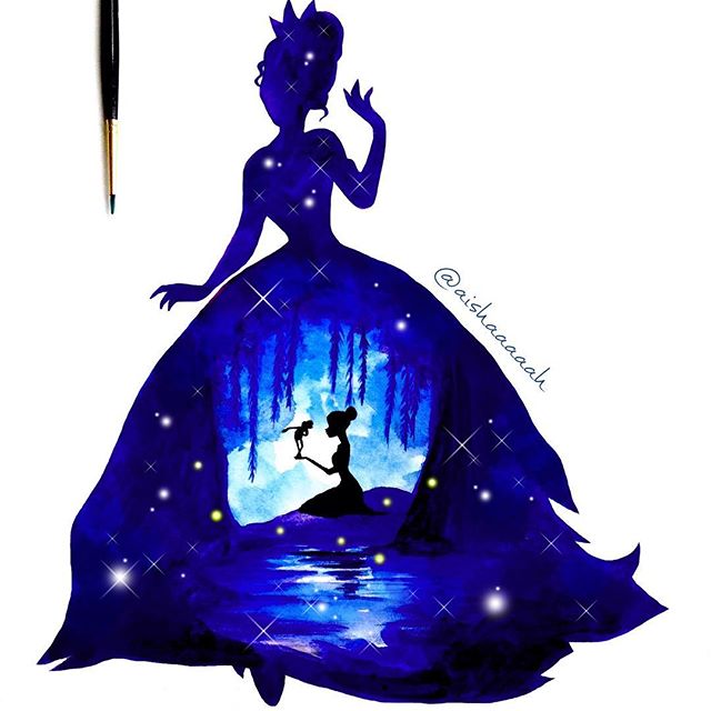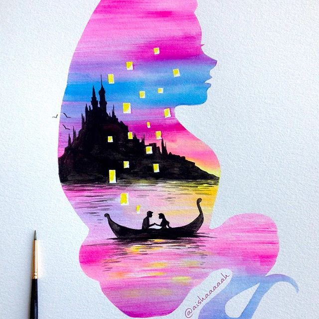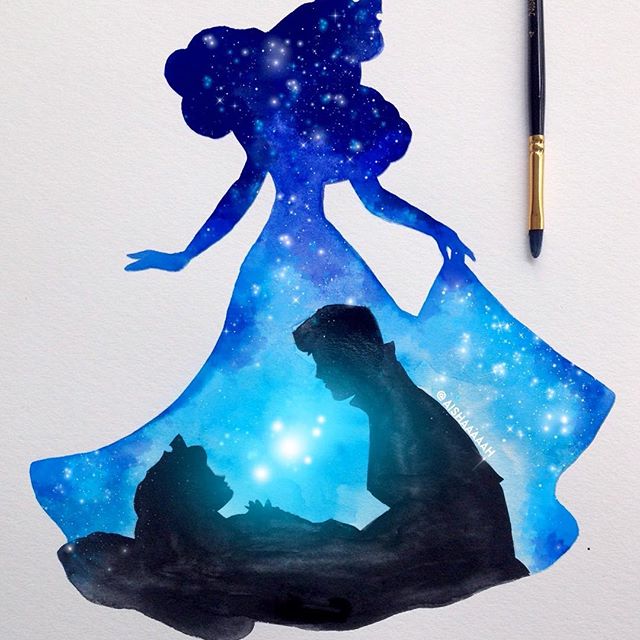 Нежные и сказочные акварельные силуэты Дисней Принцесс в работах @aishaaaaah