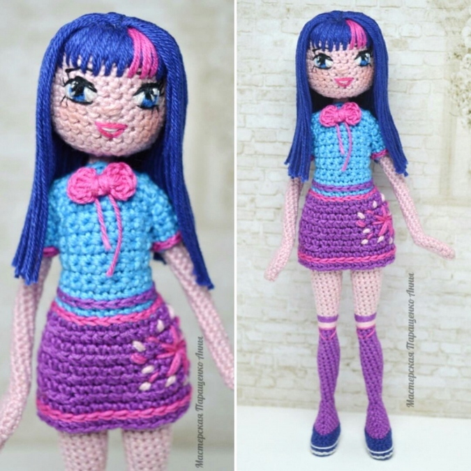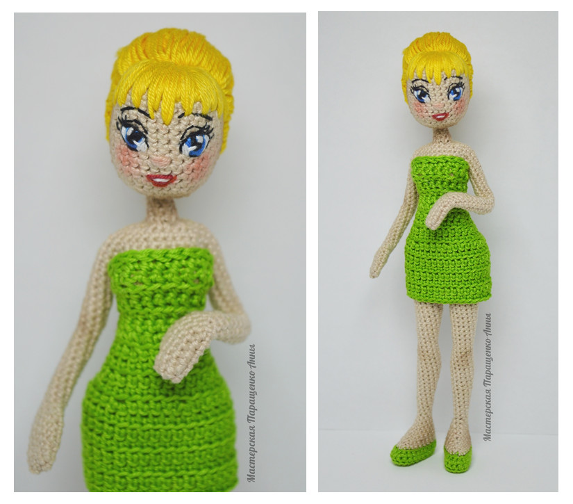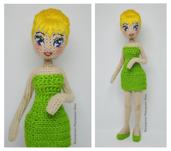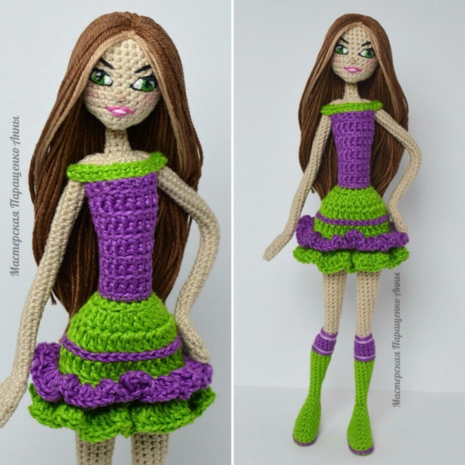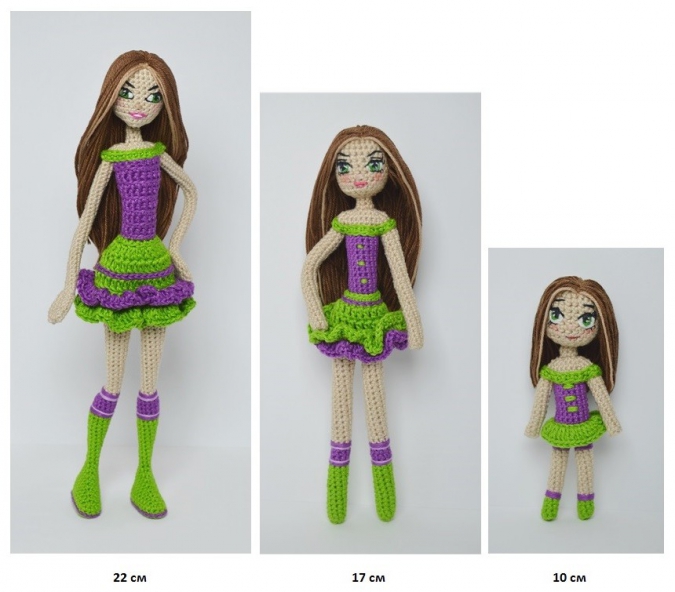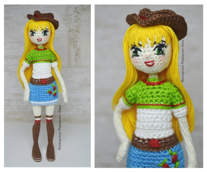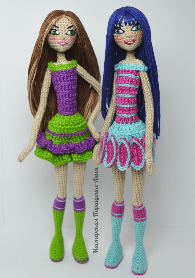 В основе многих куколок сделан каркас, который также делается в ручную в зависимости от внешности каждой куклы. И мало того что куколкам с каркасом можно придавать различные позы, так они еще и могут стоять самостоятельно. Сами куколки вышиты крючком, у некоторых могут сниматься отдельные детали одежды. Даже глаза у кукол вышиты, а не приклеены, а волосы прошиты таким образом что с ними можно играть и делать различные прически.