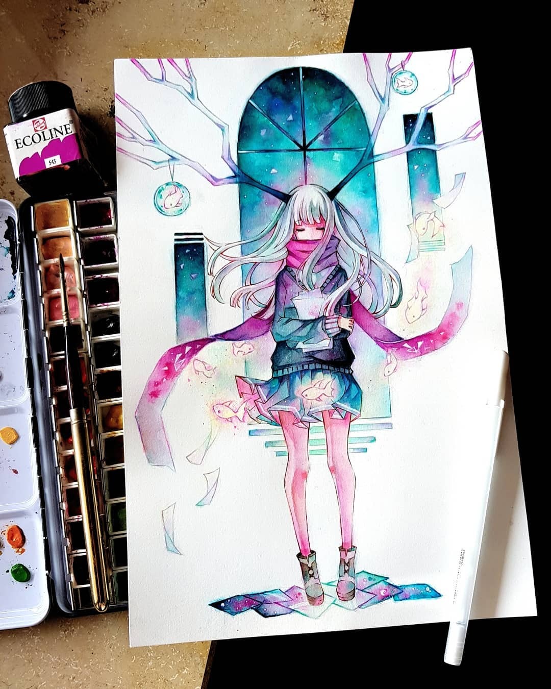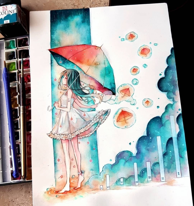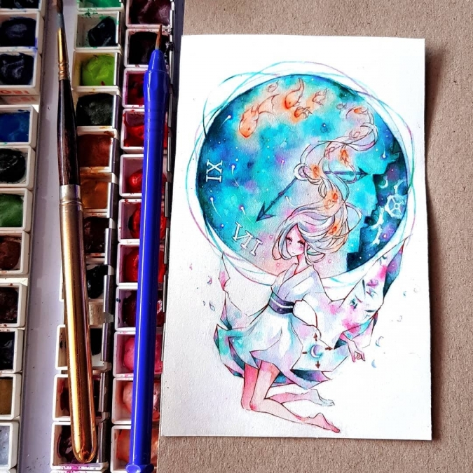 Акварель может быть разной. Она идеально подходит для передачи на бумаге красоты цветов и растений, нежных иллюстраций, а еще акварель может быть такой, как на рисунках художницы под ником Raemion.