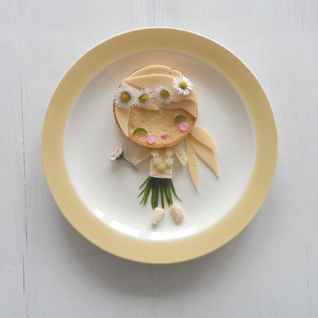 Цветы и веточки конечно же не съедобны, но они удачно дополняют элементы картин из продуктов.