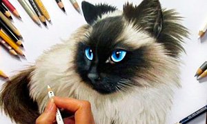 Видео с ускоренным процессом рисования очень красивых портретов кошек с помощью цветных карандашей.